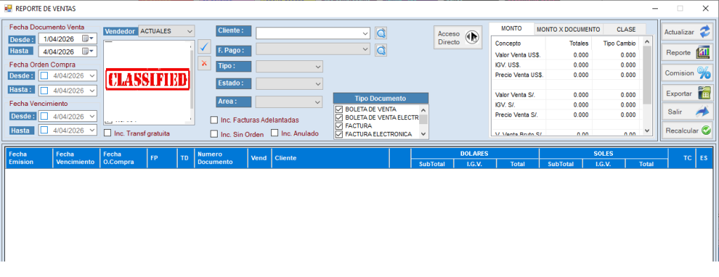 - ingresamos a Reporte de Ventas y se nos abrirá el siguiente panel.